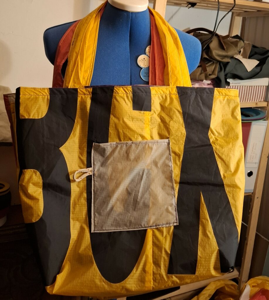 L’idée ici est d’offir une seconde vie aux voiles de paramoteurs réformées qui ne peuvent plus être utilisées pour voler. Ces matériaux sont hyper intéressants, solides et souvent plein de couleurs !